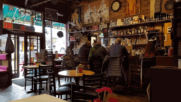 We could find almost no photos of this place that weren’t blurry, which may or may not have to do with the consumption of 20-oz drafts served up in this West Village saloon. You’ll find Irish expats fraternizing with Greenwich Village locals, plus frequent music events and poetry readings every other Tuesday.